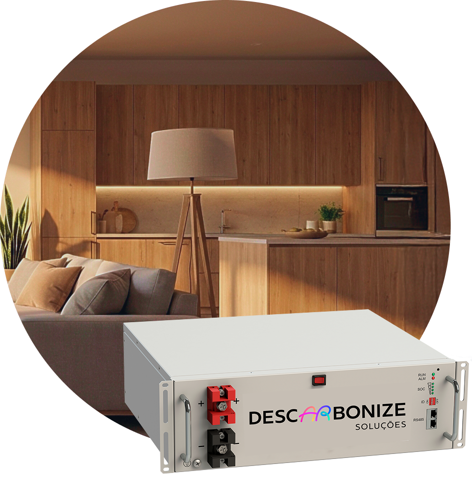 A Descarbonize oferece kits personalizados para cada tipo de imóvel, considerando o consumo médio mensal e as características dele. Investir em uma bateria é mais do que conveniência: é segurança, economia e valorização do imóvel.